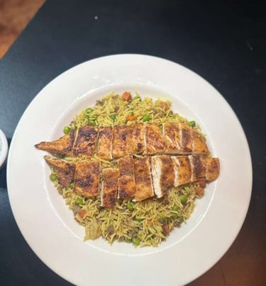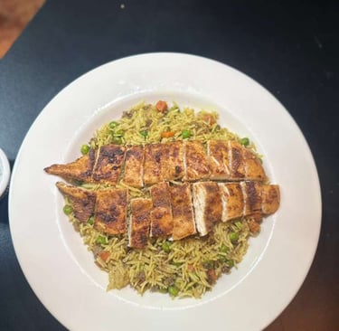 A famous Jordanian dish consists of rice with peas and carrots. Topped with ground beef, pine nuts, and Almonds. House Tzatziki sauce served on the side.